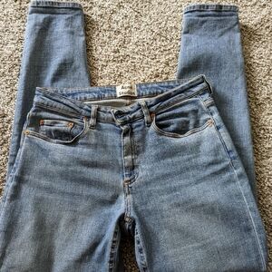 These are a great pair of medium rise jeans, with a medium/light wash. They are very soft with some stretch as well.