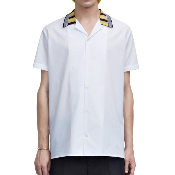 - From the Acne Studios SS15 collection, this short-sleeve shirt features a minimalist design with a standout multicolor knit striped collar.