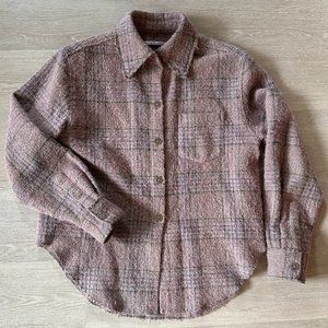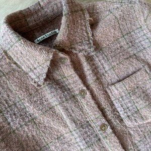 Beautiful dusty pink wool fabric with hues of cream, olive green and deep yellow