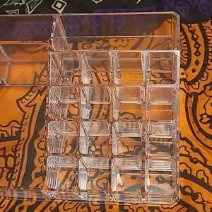 Acrylic Makeup Storage container. 10 inch length, 6 inch width and 3 inch high.