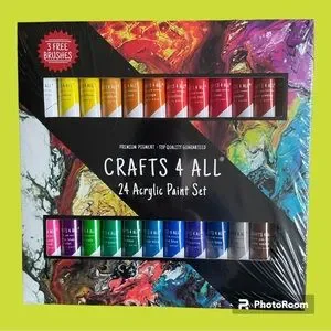 Acrylic paint set. Includes 24 paints and 3 brushes