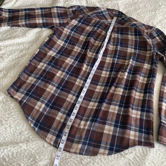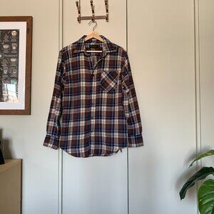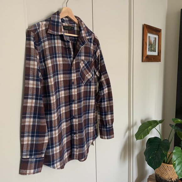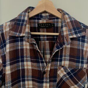 Activa Brown and Navy Blue Plaid Flannel Button Down Shirt