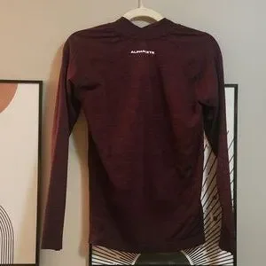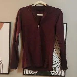 Lightweight active long-sleeve, with a 1/2 zip. Black Cherry color