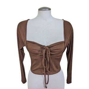 Active USA Womens L Long Sleeve Crop Top Lot of 2 Ruched Tie Front Double Layer