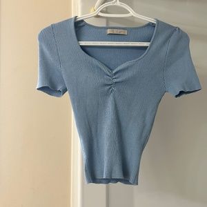 Light Blue top with sweetheart neckline. Slightly cropped and tight fitting. Size small. Worn only once