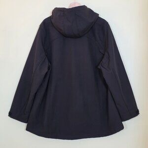 Active Zone Jacket Womens 1X Black Softshell Zip LS Fleece Inside Pockets Hood