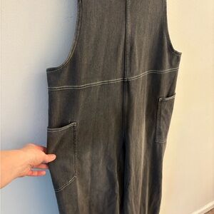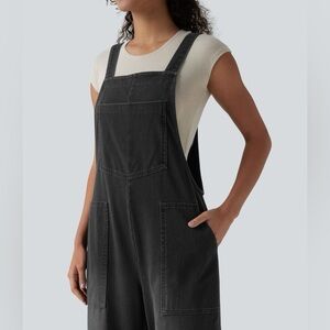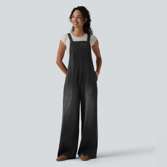HALARA Flex Square Neck Washed Women's Charcoal Grey Denim Overalls w Pockets, Sz XS. Brand new without tags condition. Cute wider leg style. So comfortable.