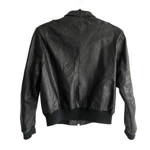 Ada Black Leather Zip Front Long Sleeve Moto Bomber Jacket M