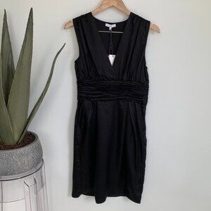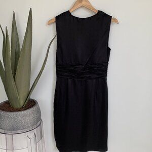 Absolutely gorgeous hammered silk dress with a stunning sheen. It has a ruched waist, crossover bodice, and pockets! Beautiful pleating at the shoulders and waist. Hidden side zip.