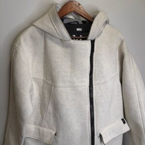 Add Down Cream Wool Hooded Jacket Size 4 Neutral Minimalist
