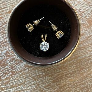 SET Cute and Rhinestone Earrings with Dainty Necklace Charm (chain not included).