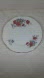 White, decorated with pink and blue flowers, grey stems and leaves, scalloped gold rim. Perfect for a bridal shower or tea party.