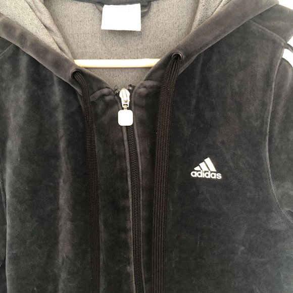 Addidas grey zip-up velvet sweater. It has stars on the sides where the Adidas stripes are as you can see in the picture. The addidas logos both have sparkles on them. Please message me if you have any questions about anything!! FREE worldwide shipping
