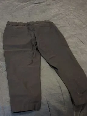 Stretchy cropped pants with a smooth front. Elastic waistband with button closure. Slim ankle-length cut. Versatile for work or casual wear.