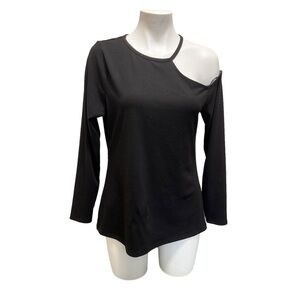 Addition Elle Black Long-Sleeve Knit Top with Cold Shoulder Size 1x