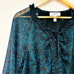 Addition Elle – Black and green floral long sleeve chiffon dress