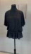 Elegant black blouse with a V-neck. Features short sleeves and a layered hem. Perfect for any occasion.