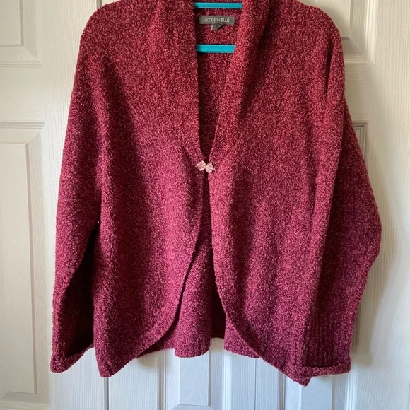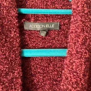 Chic deep red cardigan by Addition Elle. Soft knit fabric. Perfect for layering.