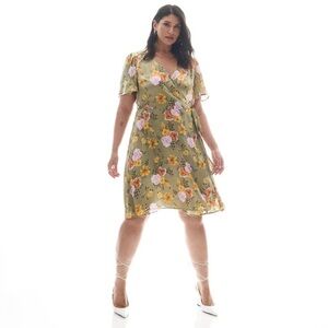 Addition Elle Floral Flutter-Sleeve Wrap Dress Size 3x