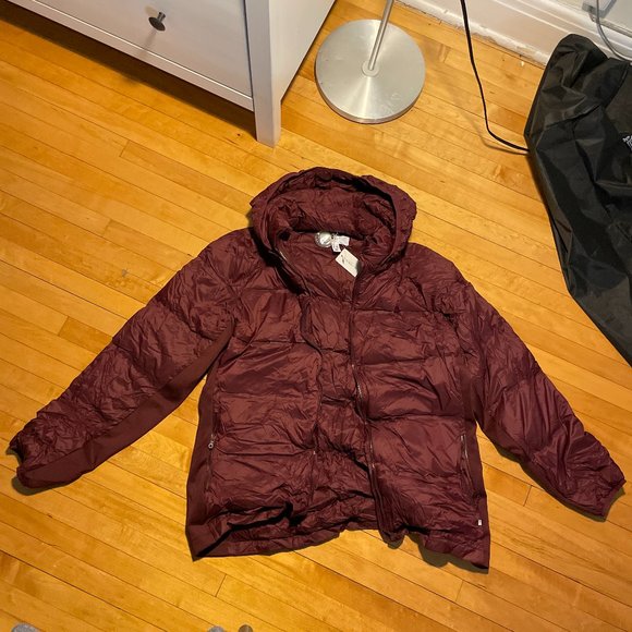Burgundy jacket that comes with a back to pack in. Brand new, never worn before.