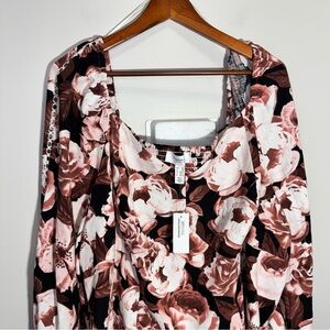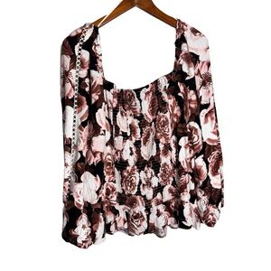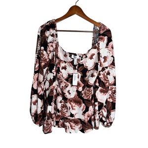 Addition Elle Linen Blouse Sweetheart Neckline Smocked Back Size 4x NWT