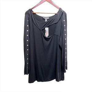 Addition Elle Love & Legend Black Long Sleeve Button Detail Keyhole Cutout NWT