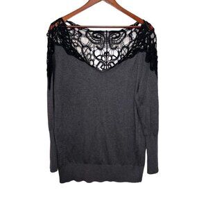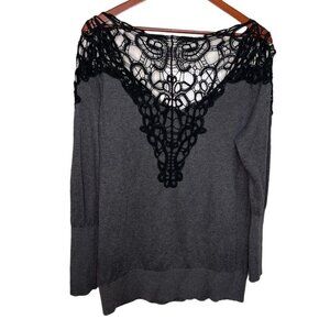 Addition Elle M Studio Crocheted Vneck Grey Lightweight Sweater Size 2X
