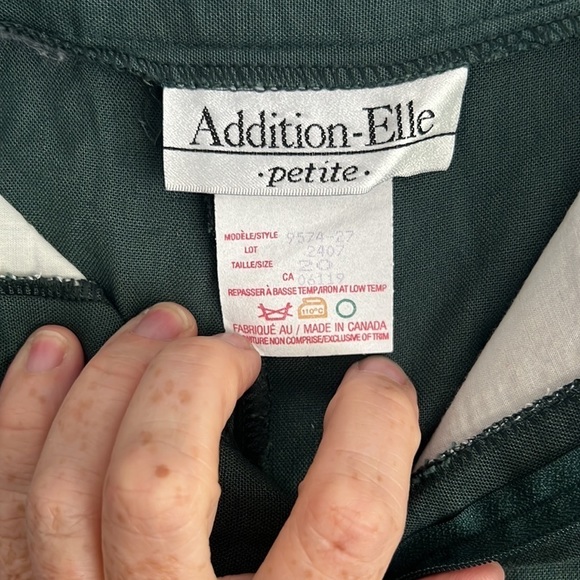 Addition Elle Petite Linen Blend Two Piece Pants Suit Short Sleeve Green