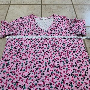 Addition Elle Pink Floral V-Neck T-Shirt - Size 2X Plus Size