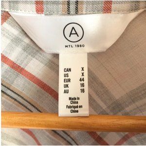 Addition Elle Plaid Button Up Shirt Size X Gray Peach and Orange Red