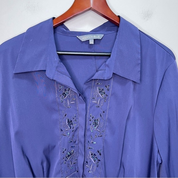 Addition Elle Purple Beaded Button Down Shirt Size 24