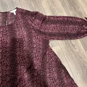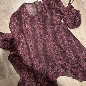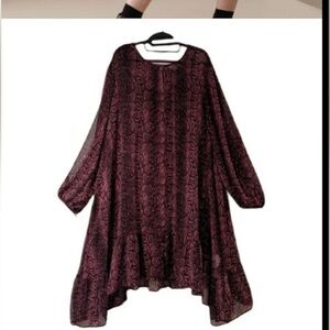 Addition Elle Ruffle Hem Snakeprint Dress with underneath layer in black looks great paired with a belt, bubble sleeve with tie