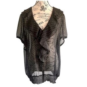 Addition Elle Sheer Polka Dot Ruffle Blouse – US 20p | Black & White