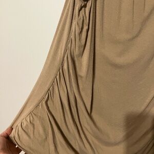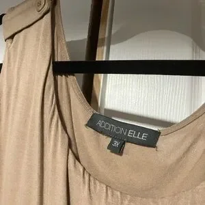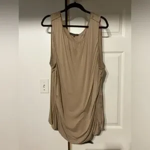 Addition Elle Tank Top. Tan/beige colour with side ruching for a flattering fit and accent buttons at the shoulders.