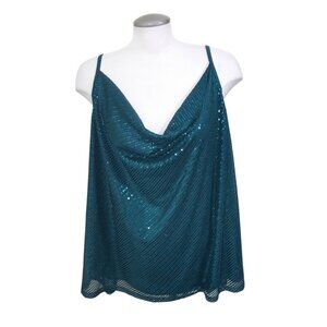 Addition Elle Womens NEW Draped Front Sequins Camisole Top Plus 3X Emerald Green