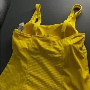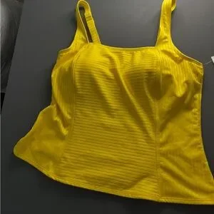 Dive into style with this vibrant yellow tank top from Addition Elle, featuring a ribbed texture and a fitted design perfect for swim occasions. The sleeveless cut and stretchy fabric ensure comfort and ease of movement, making it an ideal choice for sunny days by the water.