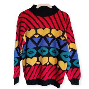Adele Knitwear VCR Love Knit Hearts Ugly Sweater size M Vintage 90s Rare HTF Fun