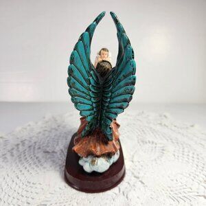 Measures 6 1/4" to the top of her wings, base is 4 1/4" x 2 3/4".