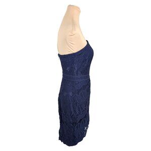 Adelyn Rae Dark Navy Blue Lace Strapless Mini Dress Boned Corset Sz S