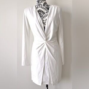 Adelyn Rae Deep V Neck Twist Knot Front Long Sleeve Dress Soft White S