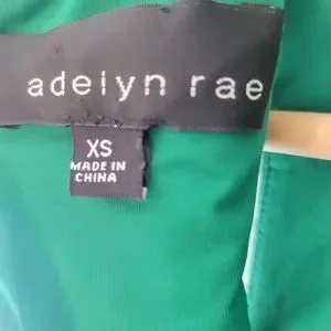 Super cute deep green Adelyn Rae mini dress. Fit and flare style with teardrop shaped cutouts, godets in the skirt and stud details. Size XS (it's a little too tight to be comfy for me now), but with lots of stretch. Exposed metal zipper up the back. Smoke free house, but cat friendly.