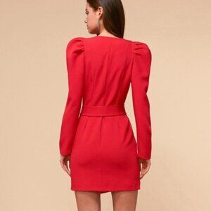 Adelyn Rae Sz M Camryn Red Blazer Puff Sleeves Belted Mini Dress