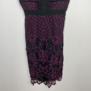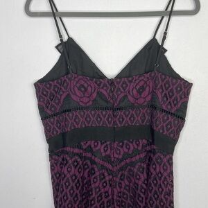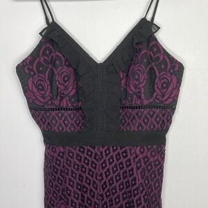 In great condition. 60% cotton 40% cotton completely lined. Beautiful events dress with lace layer, ruffle on the front. Adjustable straps. High low bottom hem. Measure lay flat: bust 18'' waist 14,5'' hips 17'' length 42''.
