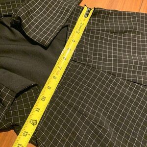 One piece jumpsuit from Adelyn Rae. Strappy body con top with squared and flounced front neckline, crisscrossed straps and open at the back, secured with long ties. Invisible back zipper closure in the pant for clean slim fit. Gentle pleats at front waist line for comfort, front slash pockets, wide legged flowing pant leg. Wear bare for summer, or layer over t's and tops, add a sweater or jacket for cooler weather wear. Very versatile travel piece. Excellent used condition, appears unworn and as new. Black poly blend fabric with white window pane check. Be sexy and sassy in this hot, trending jumpsuit. Finish you look with a few pieces from Our Closet (some suggestions shown all listed and priced separately, more options available). Fun and fashion forward for you from Lemon Squeezy Shop🍋