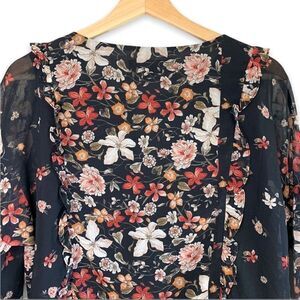 This is a Adelyn Rae Floral and Ruffles Sheer Sleeve Layered Top
