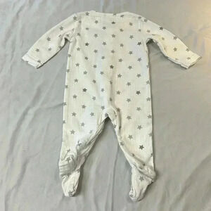 Description: Muslin Cotton short sleeve Romper/Sleeper. Full length zipper closure. Star design all around.