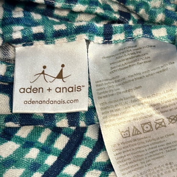 Aden + Anais Teal and White Plaid Viscose/bamboo swaddle Blanket