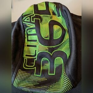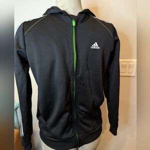 Adidas track jacket. Adidas 3 stripe full zip. Black with neon green and silver gray stripes. Size 13/14 US L