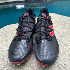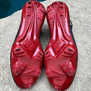 A new pair of size 15 Adidas AdiZero Afterburner 8 Baseball Cleats with tags attached but no box. They are black with red accents. Product code is H00976.