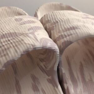 Chic Adidas slides with a textured design. Features a blend of beige and tan colors.